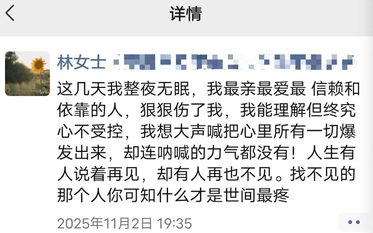 据红星旧事此前报道,李群和林伟强于2018年通过收集认识,2022年岁尾确定爱情关系,后二人因豪情胶葛于2024年8月底分手。林伟强认为李群对豪情不忠,遂欲李群及取李群有亲密关系的人,并提前采办了三棱军刺、电击枪等东西。2024年11月1日,林伟强正在一处出租屋将李群掐死。(报道链接:)人李群母亲林密斯告诉红星旧事,宣判当天,林伟强听到死刑判决成果后,害怕得颤栗,并向求情,但愿活着,称情愿给李群父母养老。随即,他当庭暗示上诉。林密斯暗示,但愿以林伟强的死刑,潜正在的群,“给全网女孩子一个平安的爱情。”宣判开庭前一天的1月12日,林密斯又去了位于安庆市宜秀区荣耀大市场出租屋的案发觉场。“情感一冲动,腿就软了,走不动,老公把我背回来的。”女儿出过后,本来就确诊鼻咽癌的林密斯因为脑部放疗化疗,一年时间里听力受损,经常腿软走不了。据引见,生于2002年的李群从高中起头做电商,开网店卖化妆品,正在一次同窗中认识了林伟强,并被后者持久逃求。2022年,李群通过专升本,考上安徽医科大学护理专业,正在安庆医药高档专科学校就读。同年,两人确立爱情关系。但林密斯称对这段恋情一曲不知情,也不晓得女儿后来把电商公司代表人和银行账户让渡给林伟强。